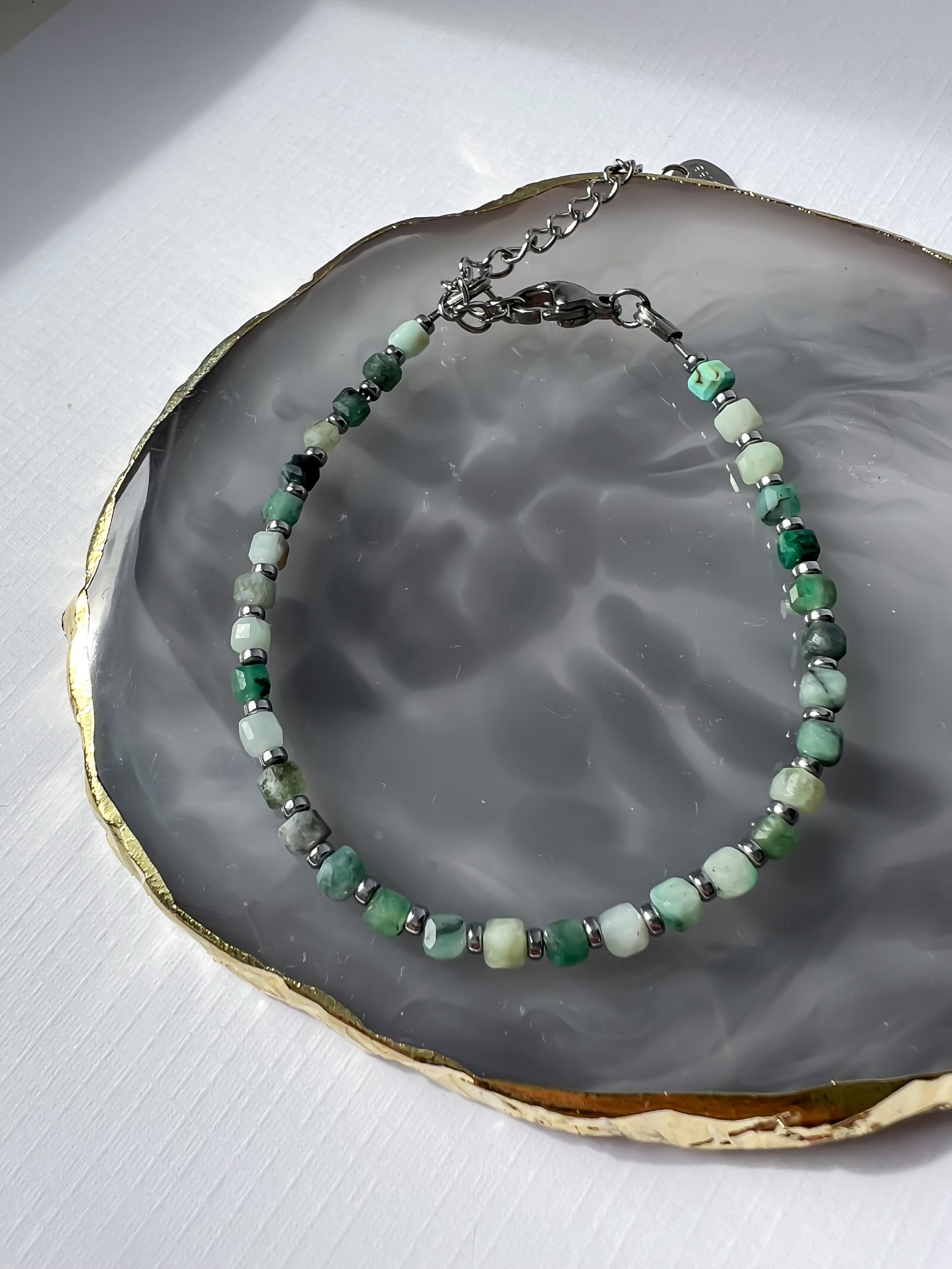 Elegancka i pełna energii – ta bransoletka z gładkich, 4-milimetrowych kulek pirytu to subtelna ozdoba, która działa jak amulet dobrobytu i odwagi. Złote przekładki podkreślają jej wyjątkowy charakter, czyniąc z niej biżuterię zarówno delikatną, jak i wyrazistą.