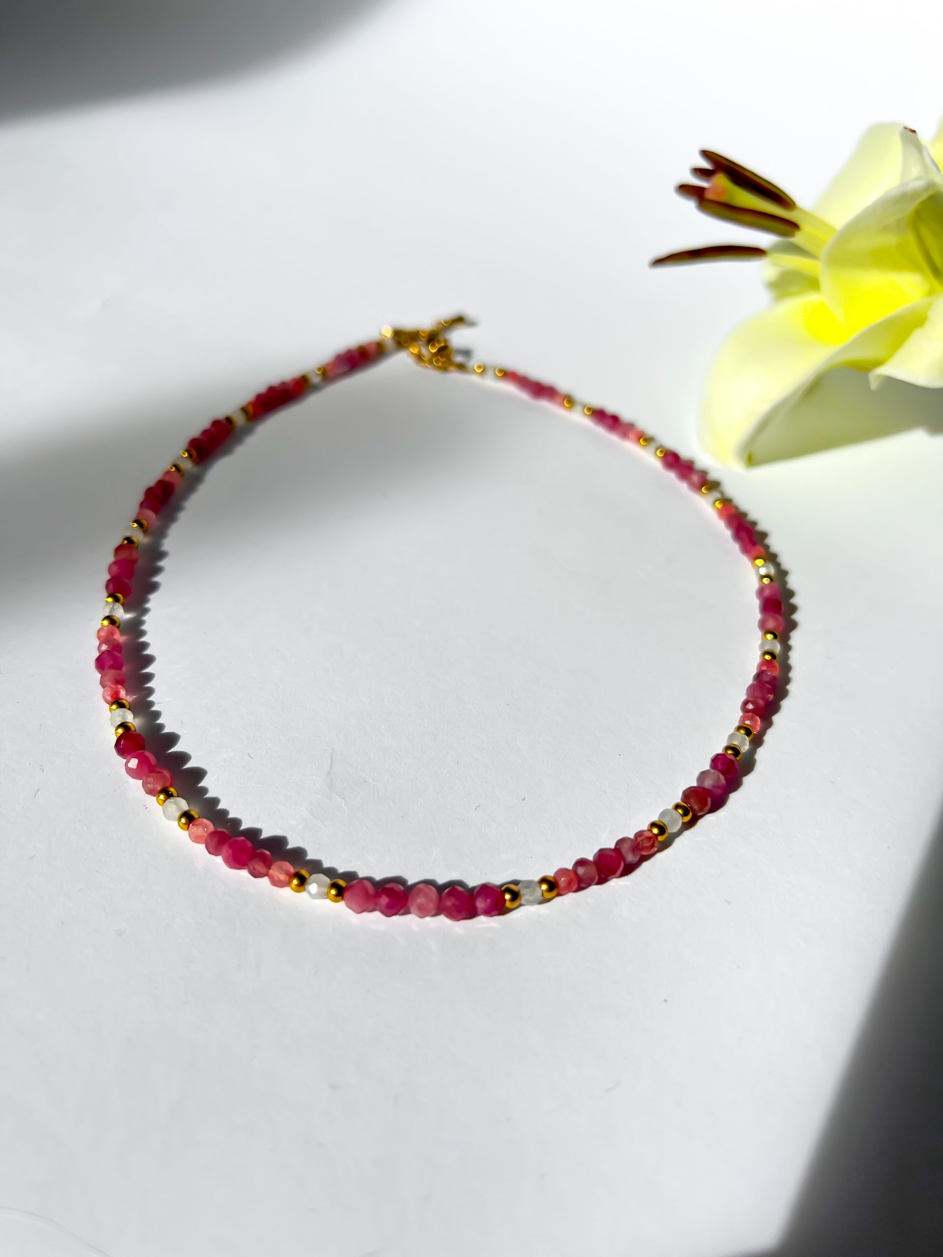 Skład kamieni: Turmalin różowy, selenit, jadeit malinowy, kwarc truskawkowy.
