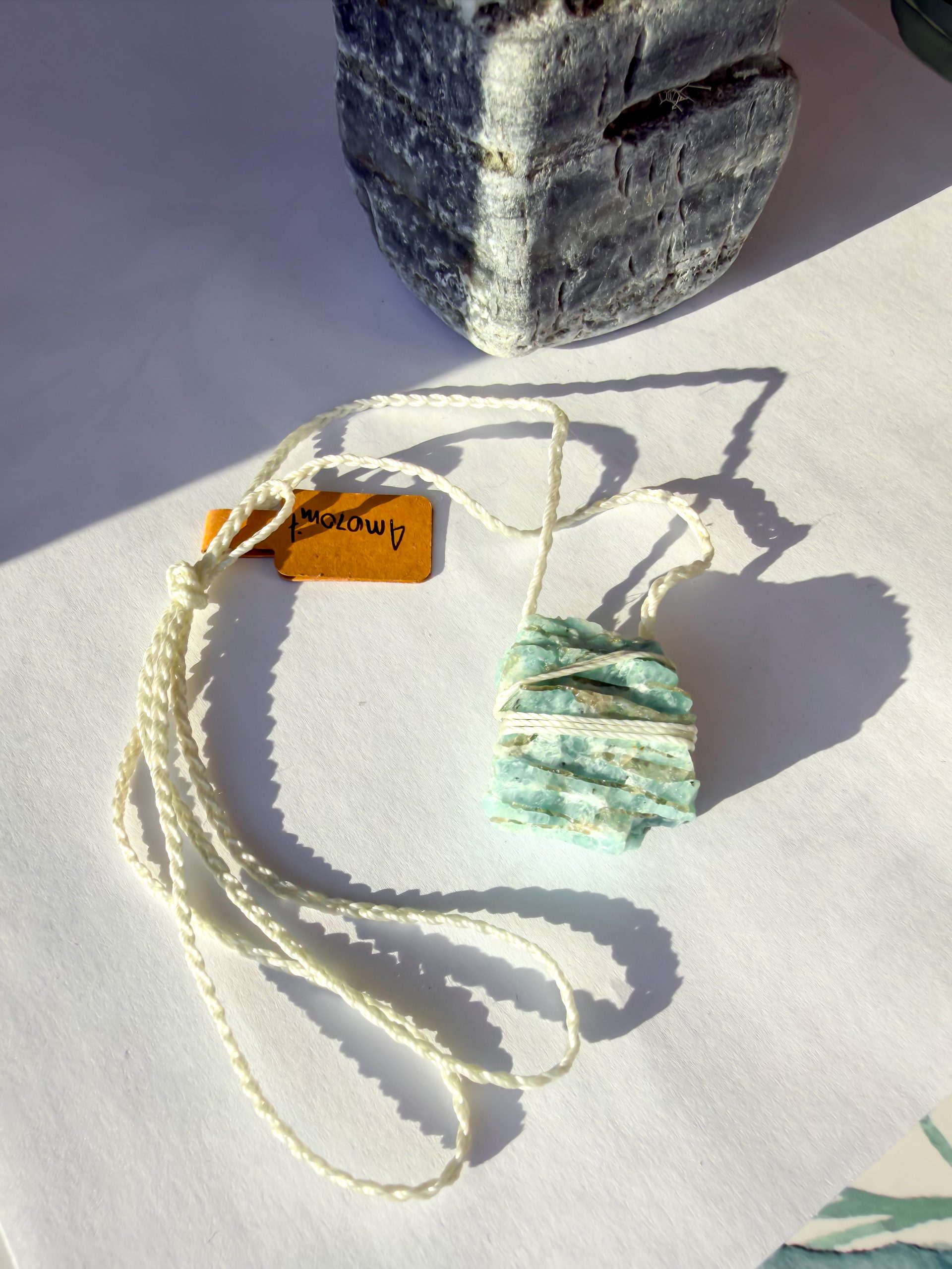 🌿 Materiały: Naturalny amazonit (bryłka surowa), sznurek