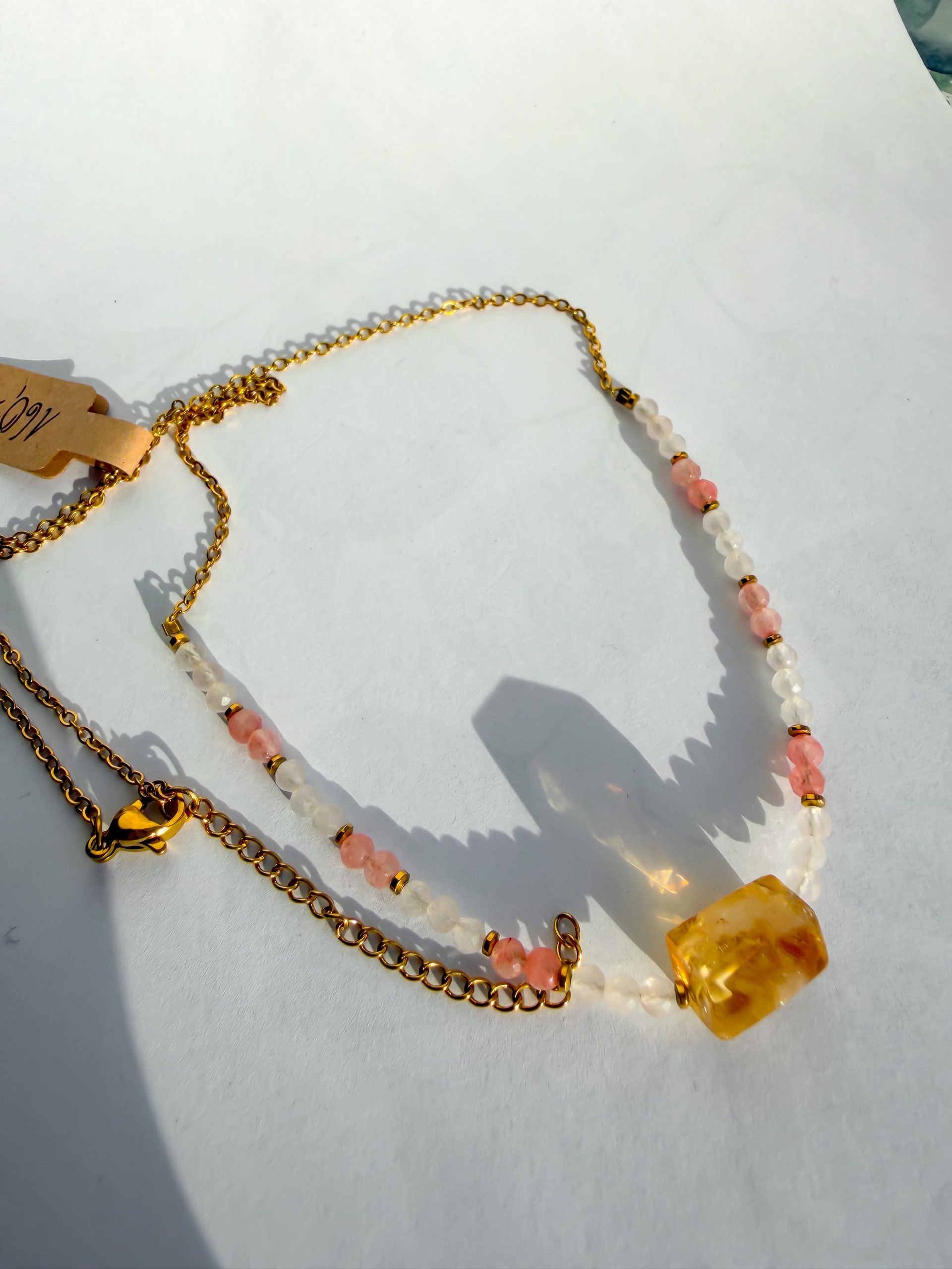 Naszyjnik z Cytrynem, Jadeitem Malinowym i Kwarcem Różowym – Radość, Miłość i Harmonia 💛💗✨
