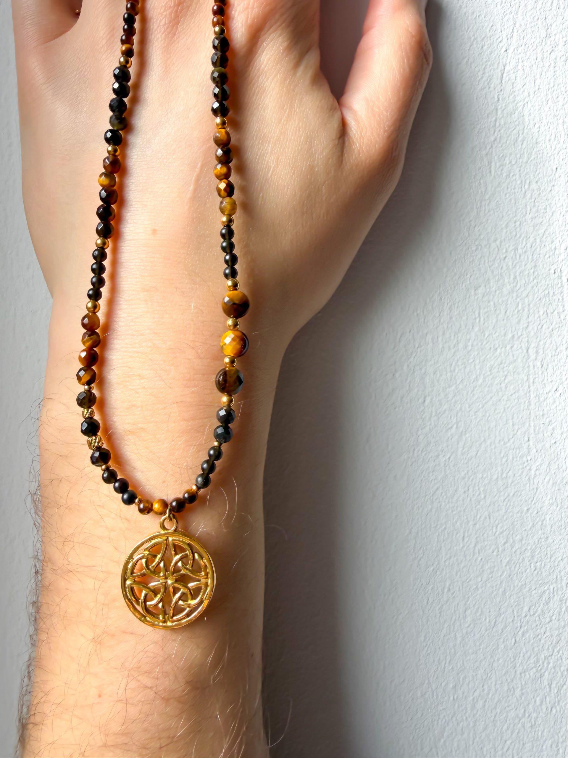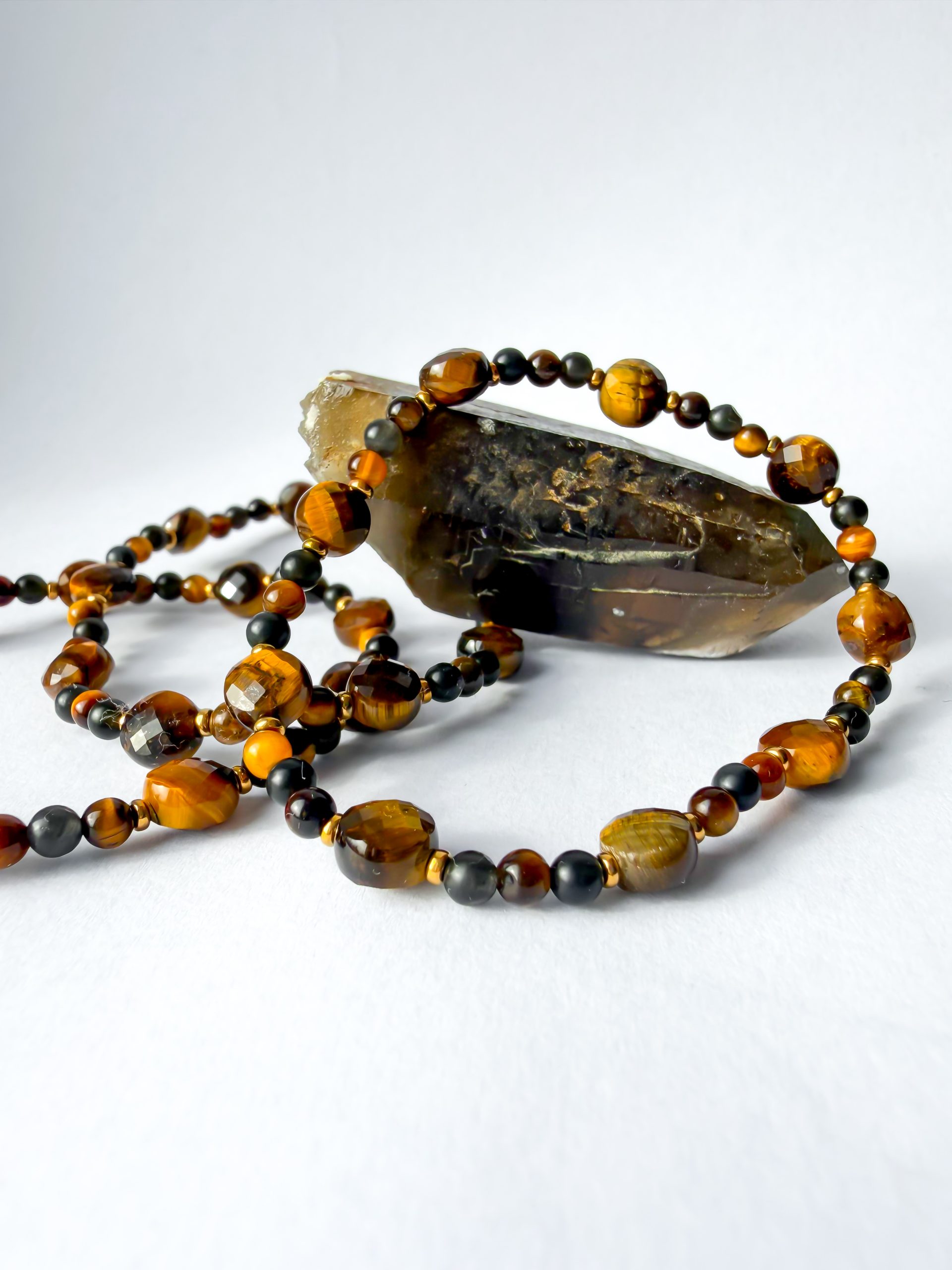 Naszyjnik z Turmalinem, Obsydianem i Tygrysim Okiem – Ochrona, Odwaga i Stabilność ⚫🐅✨